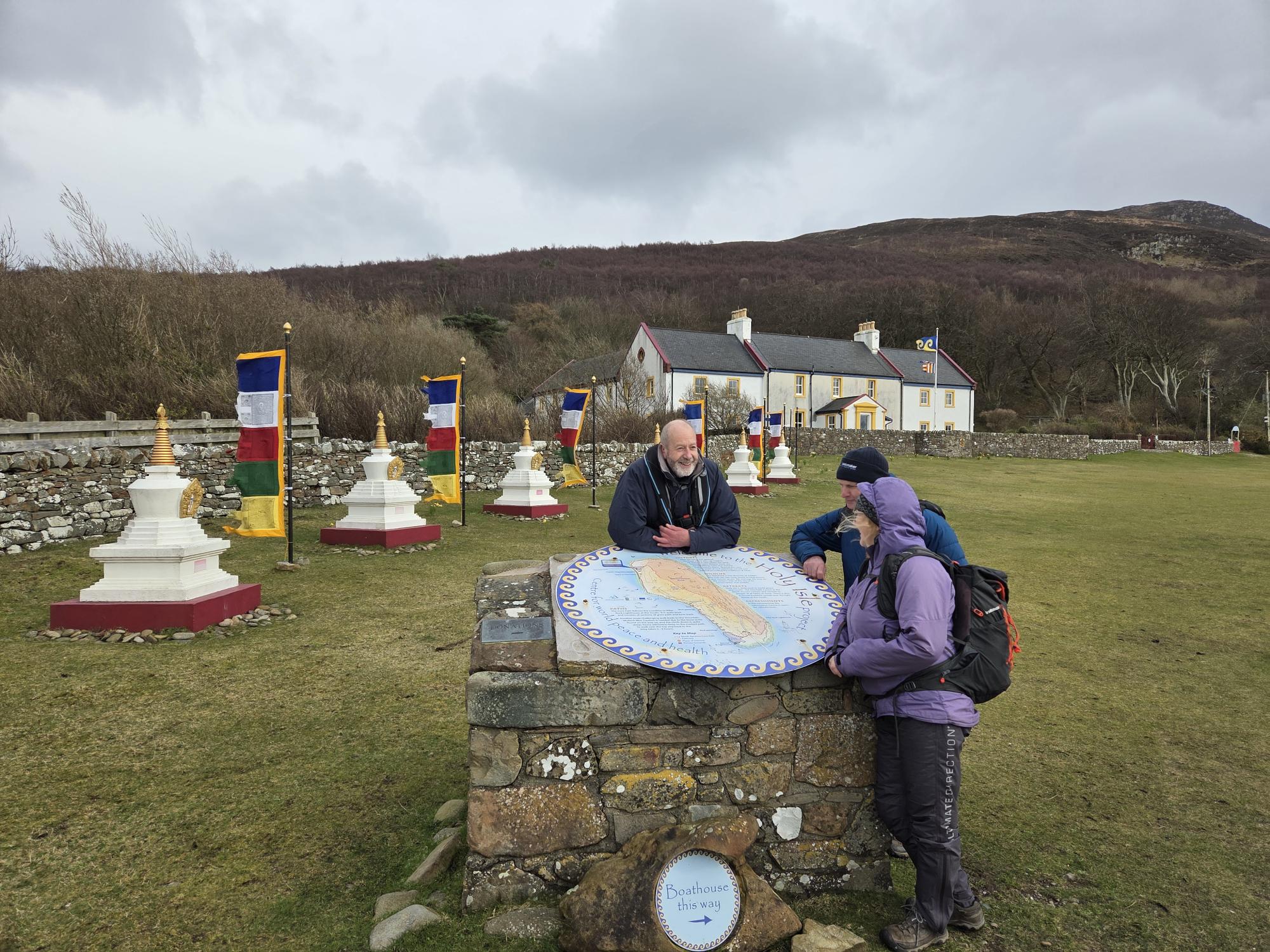 Alex, Grant and Caroline at the Buddhist Monastery on Holy Isle, Arran
